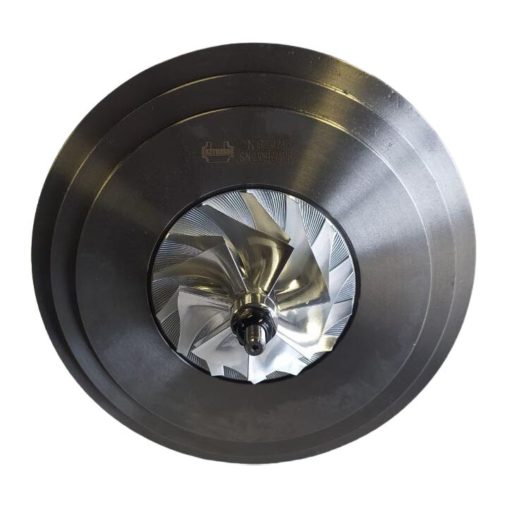 Картридж складається з центрального корпусу турбіни, внутрішнього набору, ротора турбіни та колеса компресора турбіни (крильчатка). Цей картридж успішно пройшов тестування на балансуючому стенді Turbo Technics і повністю готовий до встановлення та подальшої роботи.