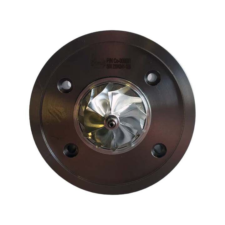Картридж складається з центрального корпусу турбіни, внутрішнього набору, ротора турбіни та компресорного колеса турбіни (крильчатки). Цей картридж успішно пройшов тестування на балансувальному стенді Turbo Technics і повністю готовий до встановлення та подальшої експлуатації.